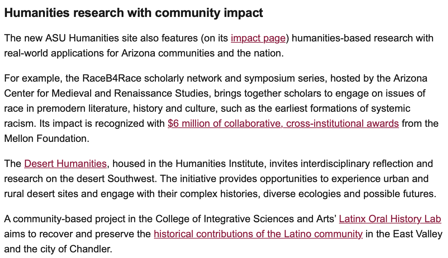 Looking over my email today, I saw one from ASU’s College of Liberal Arts and Sciences promoting a new website for ASU Humanities. “That will be wonderful!” I thought. A whole website dedicated to the pursuit of wisdom and leading a virtuous life.